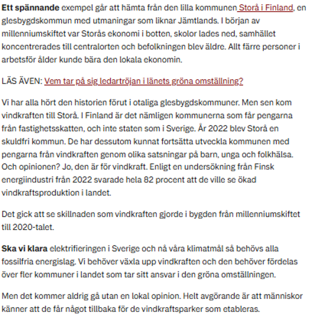 - Att visa vad ni tänker göra med pengarna ni får för vindkraften är ett smart sätt att visa vad vindkraften ger tillbaks lokalt och få medel till + uppmärksamhet för satsningar (miljö/ekonomi/socialt). Exempel: I Strömsunds kommun går pengarna rakt in i kommunal verksamhet bl.a. till gratis busskort till barn och unga (artikel i Länstidningen Östersund 26/3, se skärmbilder nedan). Hur planerar ni att använda era vindkraftspengar? Berätta för oss (kansliet@klimatkommunerna.se, max.bonnier-eklund@greenpowersweden.se och matilda.killander@greenpowersweden.se så sammanställer vi exemplen och sprider!